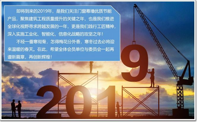 即將到來的2019年,是我們關注門窗幕墻優質節能產品,聚焦建筑工程質量提升的關鍵之年,也是我們推進全球化視野尋求跨越發展的一年,更是我們踐行工匠精神,深入實施工業化、智能化,信息化戰略的攻堅之年!