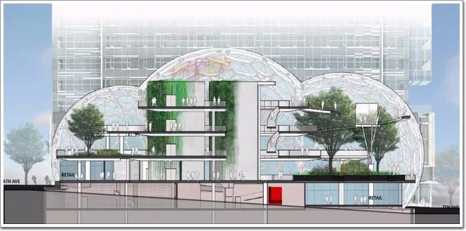 亞馬遜新總部是由美國NBBJ建筑設計公司所設計,NBBJ設計了超過300萬平方英尺的亞馬遜中央場地。其中總部最核心的區域由3個大的球狀體組成叫做“the spheres”