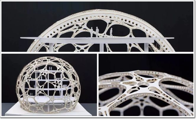 The Spheres有三個球體的玻璃穹頂,結構使用鋼框架(詞條“框架”由行業大百科提供)和夾層玻璃建造,它們是重疊在一起的六十面體。