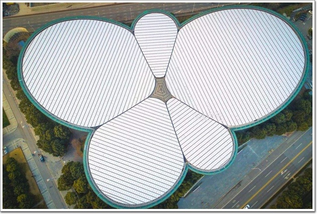 而形成“蝴蝶蘭”的屋蓋部分采用由正交鋼結構桁架組成的空間結構體系,為大跨度雙向鋼桁架體系,總長約160米,寬約120米。