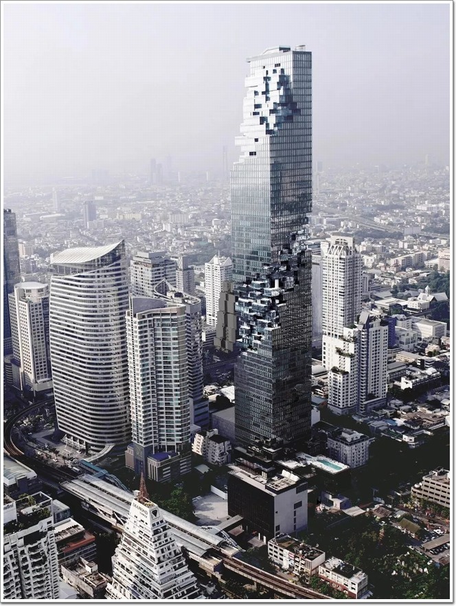 Büro Ole Scheeren的設計主持,奧雷·舍人表示,”MahaNakhon背后的理念是,把城市生活以一種戲劇性的盤旋運動,沿著大廈自下而上延伸,這座大廈不僅在其地面層,設計了一個公共廣場,甚至其頂層空間也是向公眾開放,市民活動沿著整個大廈的像素化階梯,自下而上分布,將整個建筑歸還給公眾,建筑具有強烈的城市意識和公眾意識,自身成為城市公共活動的積極參與者”。