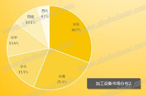 從國內市場區域情況及產品結構情況看,鋁合金門窗加工設備在市場份額內占比較大,達到了60%,同時創新產品、工業,交通等領域的市場份額較往年有所增加。