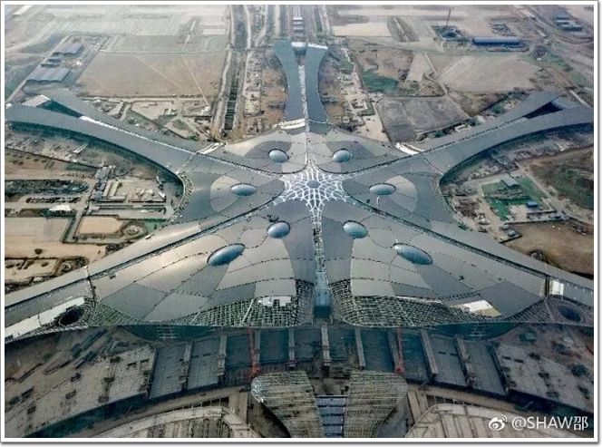 北京新機場航站樓實現功能性封頂封圍,預計2019年10月試運行。網友感嘆像是科幻大片里的外星人基地。