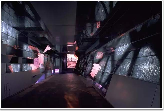 透明的建筑骨架暴露在外且相互交錯,十幾個不同的樓梯連接起來形成了一個迷宮般的無墻空間。