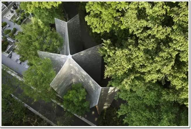 中村拓志說:“我設想的是一種帶有生活思考色彩的建筑,想讓建筑與周邊的樹林融為一體。于是我找到了這座森林,它可以包容各種不同的宗教,接受人們的祈禱。從概念上來說,我是想要一座周圍樹木林立、面向森林祈禱的建筑,你所禱告的可以是任何宗教,也可以是這個大自然。”