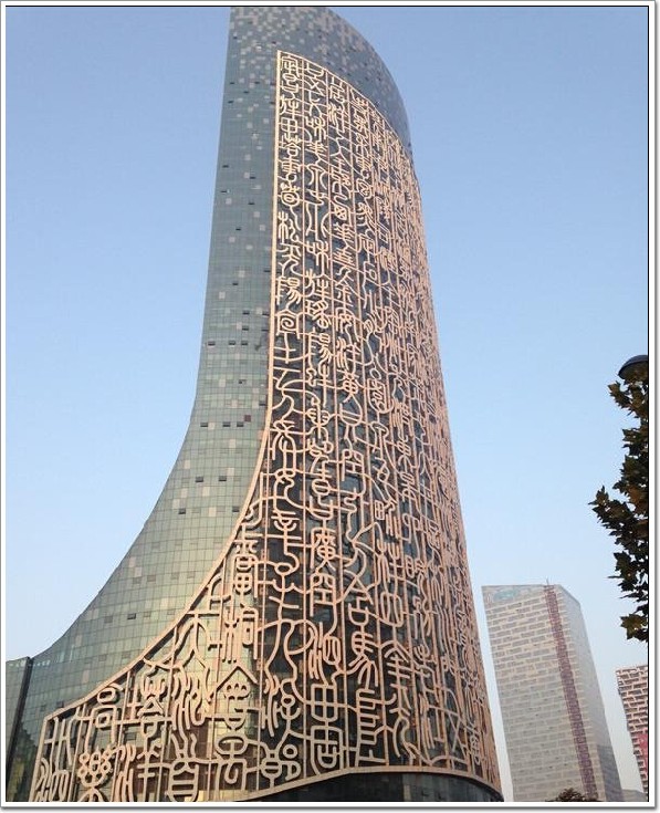 整座大廈的設計利用其優美的古文與現代科技、現代建筑的有機結合,碰撞出不一樣的火花,造型最為特別,據悉,該大樓上的文字內容實為安徽的地名、河名、湖名、山名等,但又將這些名稱的順序全部打亂,也就是說“合肥”的“合”字和“肥”字并未連在一起書寫。