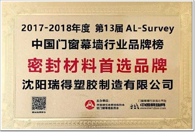“瑞易得”憑借其專業(yè)的技術(shù)團(tuán)隊(duì),最終贏得廣大終端客戶、行業(yè)專家、設(shè)計院、顧問公司和媒體總編的高度認(rèn)可,在第13屆AL-Survey2017-2018中國門窗幕墻行業(yè)大型讀者調(diào)查暨“我最喜愛品牌”評選活動中,成功衛(wèi)冕“密封材料首選品牌”大獎!