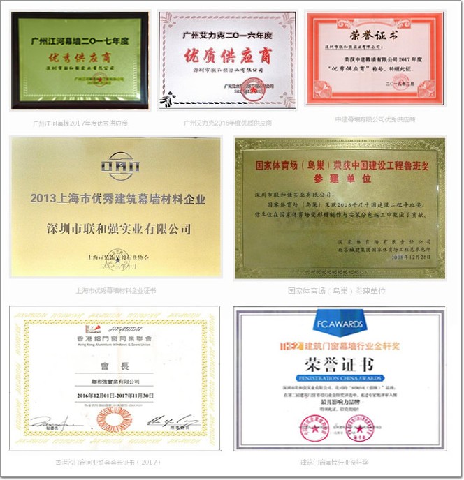 聯(lián)和強(qiáng)實(shí)業(yè)榮譽(yù)展示(部分)