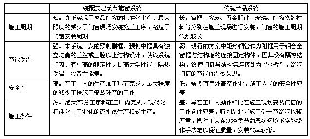 裝配式建筑節能窗系統與傳統節能窗相比具有的優勢如表1:
