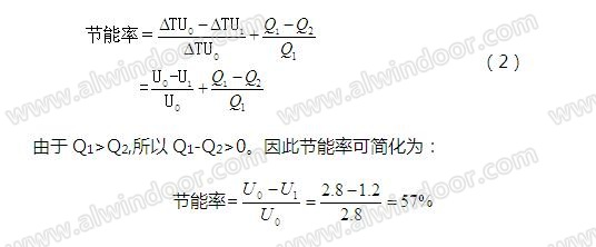 設室內外溫差為△T ,由(8mm+12mmA+8mm)中空玻璃組成的單層幕墻的傳熱系數U0=2.8W/(㎡K), 由外層為19mm單層玻璃,空氣層為500mm,內層幕墻為(8mm+12mmA+8mm)中空玻璃組成的雙層幕墻的傳熱系數U1=1.2W/(㎡K)。由于空氣滲透造成單層幕墻單位面積的能量損失為Q1,雙層幕墻單位面積的能量損失為Q2。由于雙層幕墻的空氣滲透性能比單層幕墻優良,所以Q1>Q2。雙層幕墻比單層幕墻的節能率為: