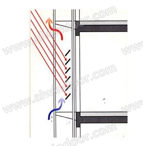 在夏季,如果雙層幕墻內的空氣不能及時的將通道內的熱量帶走,通道內的溫度就會逐漸升高,通常會達到50—60度,甚至更高,這也是認為雙層幕墻不節能看法形成的基礎。但認為雙層幕墻節能的看法剛好相反,認為即使雙層幕墻通道內空氣不循環,雙層幕墻也是節能的,而且通道內溫度越高,節能效果越好,因為它把原本應該進入室內的太陽輻射熱留在了通道內,并將其中的一部分傳到室外,其結果是進入室內的太陽輻射熱減少。同時,由于雙層幕墻通道內溫度較高,甚至會超過室外空氣溫度,在此情況下,原本環境熱量應該由室外傳向室內,現在變為通道內的熱量由通道傳向室外,環境熱量不能進入室內,即雙層幕墻的通道形成了熱位壘,室外熱量無法穿越。