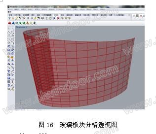 (3)通過表皮的分割,得到了凈玻璃板塊(圖16)。這些的工作也全是在參數(shù)化的平臺中完成的。