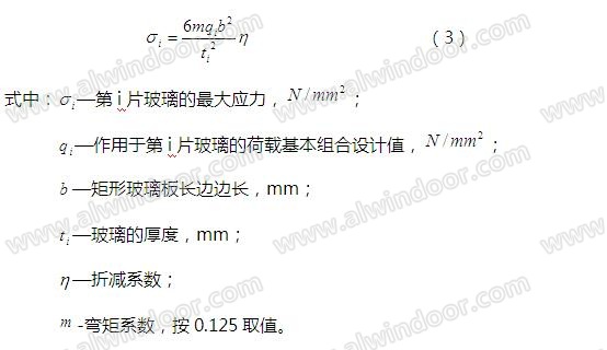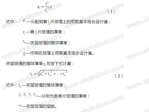 夾層玻璃強度計算時,應取夾層玻璃的單片玻璃計算。作用在夾層玻璃單片上的荷載可按下式計算: