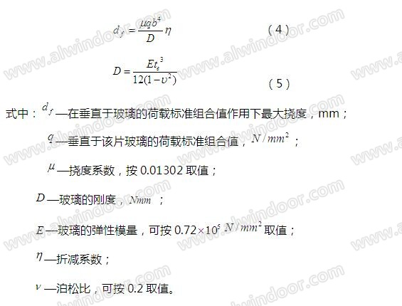在垂直于玻璃平面的荷載作用下,無肋全玻幕墻用單片玻璃的最大撓度,可用考慮幾何非線性的有限元方法計算,也可按下列公式計算: