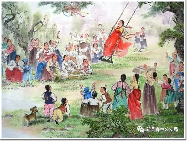 這是我國古代清明節習俗。秋千,意即揪著皮繩而遷移。它的歷史很古老,最早叫千秋,后為了避忌諱,改為秋千。古時的秋千多用樹椏枝為架,再栓上彩帶做成。后來逐步發展為用兩根繩索加上踏板的秋千。打秋千不僅可以增進健康,而且可以培養勇敢精神,至今為人們特別是兒童所喜愛。