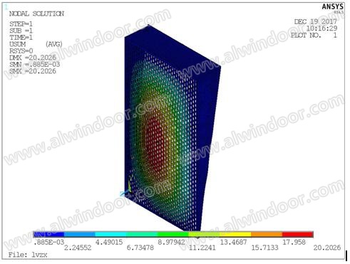 鋁板撓度云圖:最大撓度20.2mm<1390/60=23.2mm