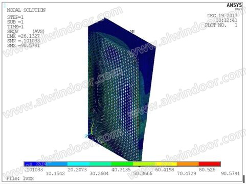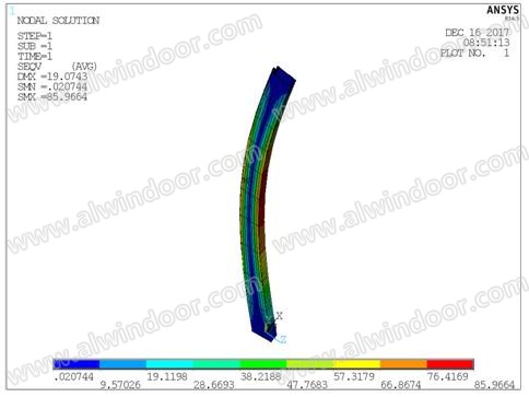 型材應(yīng)力云圖:最大應(yīng)力85.9Mpa<90MPa