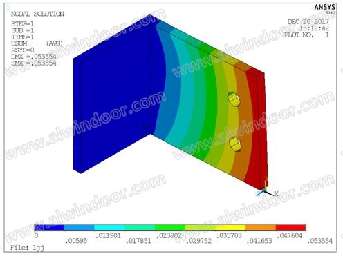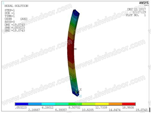 型材撓度云圖:最大撓度19.07mm<23mm