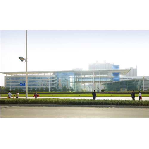 由于立面框架玻璃幕墻處于旅客密集的區域,建筑師非常重視該幕墻的簡潔、通透性,因此選用了較大分格尺寸的玻璃:寬2250mmX高3000mm。系統采用豎向明框,橫向無結構的單向結構體系,由于橫向無結構,立面的通透性大大提高,外鋁合金立柱既起到承擔結構荷載的作用,又兼顧裝飾遮陽作用,效果美觀的同時又節省了造價。
