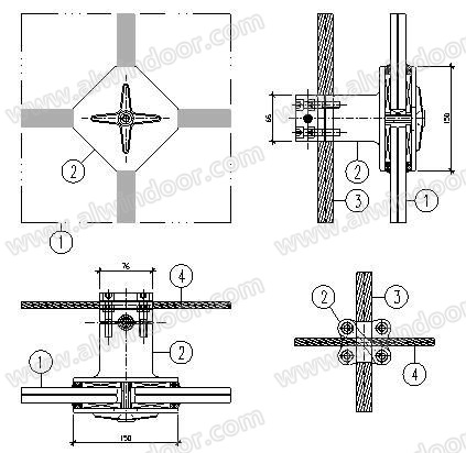 (①幕墻玻璃,②不銹鋼菱形夾具,③不銹鋼豎向拉索,④不銹鋼水平裝飾拉索)