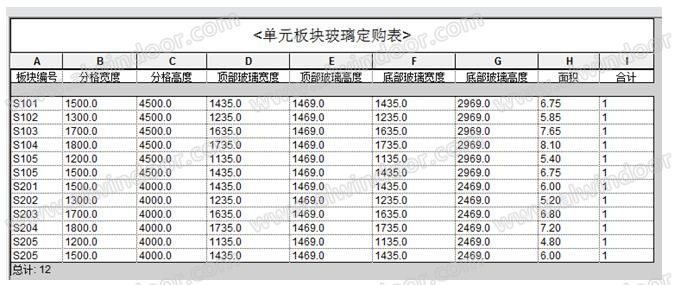 3. 三維建模軟件將根據(jù)預(yù)先設(shè)定的參數(shù)自動生成下料單,包括玻璃訂購表、型材下料單等,詳見圖3和圖4;