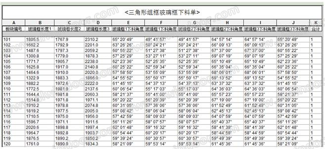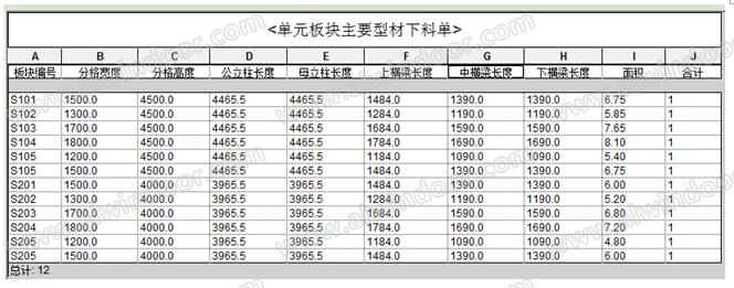 2. 三維建模軟件根據(jù)預(yù)先設(shè)定的參數(shù)自動生成下料單,包括玻璃訂購表、型材下料單等,詳見圖9和圖10;