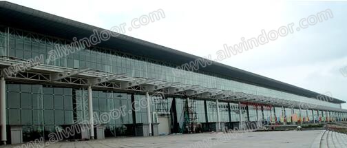單索結構玻璃幕墻在我國已有十五、六年的歷史,比如“哈爾濱國際會議中心”就是建成于2002年9月,是我國第一個平面單層索網玻璃幕墻。其單索網玻璃幕墻高13米,總長540米,采用矩形夾板式支承裝置,鋼索采用ф22mm不銹鋼絞線。其結構是由多個單索網結構單元組成的玻璃幕墻。