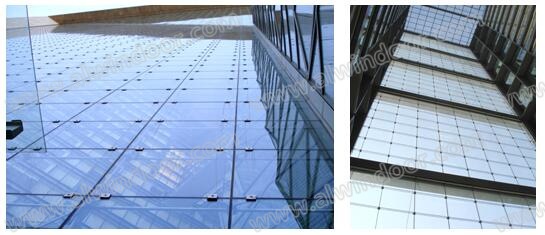 索結構玻璃幕墻:索結構玻璃幕墻是指用索結構作為玻璃幕墻的支承體系的玻璃幕墻。由于玻璃面板一般都采用了點支承的支承方式,所以按幕墻分類的原則,應該叫“索結構支承點支式玻璃幕墻”。