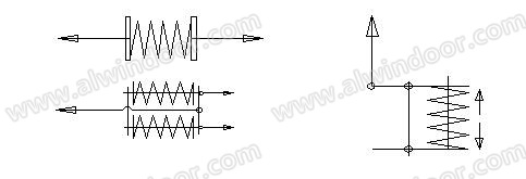 索內應力補償裝置的工作原理:此裝置是安裝在每根索的端部,索內應力的大小是由在端部彈簧系統所產生的內力所決定的,彈簧中彈力是可以預先設定的,是可控、易控的,所以應力補償裝置能使每根索的內力控制在一定的范圍內。(如圖4.2.1)