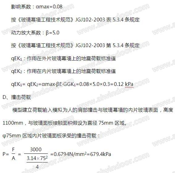以下通過一個案例介紹有關幕墻的耐撞擊計算: