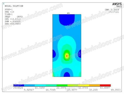 圖(3)玻璃在荷載組合二作用下的應力圖: