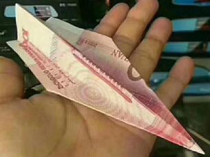 這個100元面鈔折疊的紙飛機 ☟☟☟