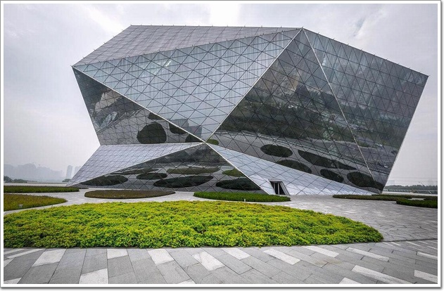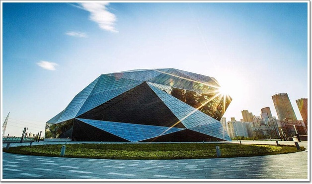大劇院從整體設計上來看,主要分為三部分,鉆石外觀、平臺、基座。大劇院占地面積約6.5萬平米,總建筑面積約8.5萬平方米,包括主體建筑面積6.7萬平方米和大平臺下建筑面積1.8萬平方米。主體建筑地下一層、地上七層,總高60米,外形被切割(詞條“切割”由行業大百科提供)成一個巨大的“鉆石”,擁有上萬噸重的鋼骨架,鉆石外立面玻璃幕墻達3.8萬平米,幕墻項目的施工和設計由沈陽遠大鋁(詞條“鋁”由行業大百科提供)業工程有限公司和上海和甲幕墻設計咨詢有限公司聯袂打造,幕墻類型包括大跨度多角度連接框架(詞條“框架”由行業大百科提供)玻璃幕墻和框架式玻璃幕墻。