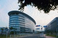 建筑整體評價:建筑的幕墻通過豎向玻璃肋的高度起伏,表現出起伏的山影,通過兩組玻璃肋疏密程度和出挑尺度的不同,將立面勾勒出近景、中景、遠景三個山影層次,水面中建筑的倒影增加了建筑的層次和表現力。豎向玻璃肋排列疏密有致,玻璃肋與玻璃幕墻垂直影射,位置及角度不同,玻璃之間豐富層疊的透射、反射和折射效果也不同,這在陰晴雨霧等不同的光照條件下,會形成微妙變幻的戲劇性效果。