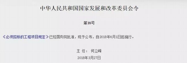 國家發展改革委印發《招標公告和公示信息發布管理辦法》 (國家發展改革委第10號令)。