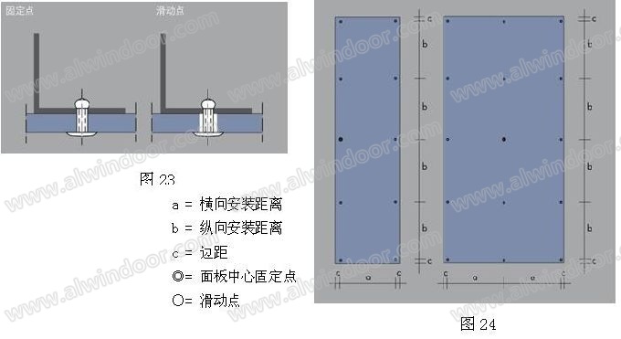 a. 每塊面板必須在面板中心位置有一個固定點,其它所有安裝點均應為滑動點;