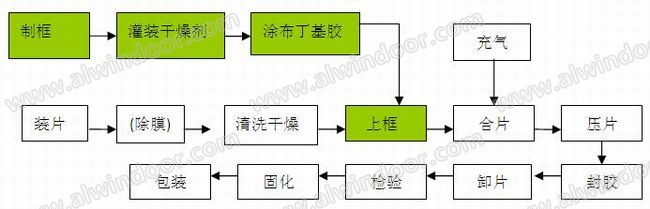 槽鋁式中空玻璃制作工藝流程圖如下: