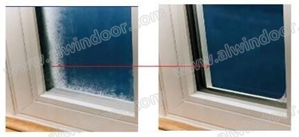 圖2 普通中空玻璃與暖邊中空玻璃抗冷凝效果圖