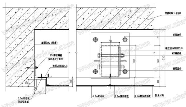 圖4.1.1墻面方形平鎖扣金屬板的收口節點示意圖