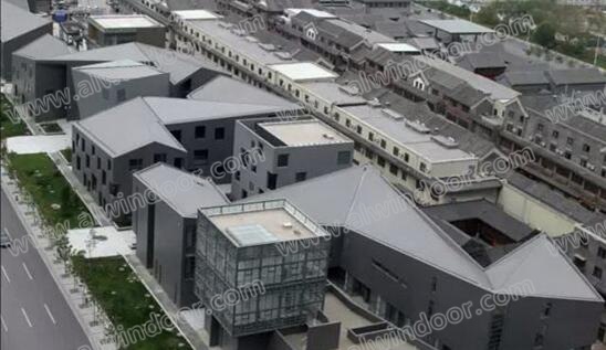 天津老城廂鼓樓中心街區改造項目,建筑面積197015平方米,在該項目的四個地塊中,設計師在屋面采用直立雙鎖邊系統和外墻立面中大量采用了鈦鋅板平鎖扣系統,灰色的色調既呼應了傳統大院的地區特色,同時,金屬的質感也增添了時尚感和現代性,使傳統建筑既能重現往日風采,又能滿足時代要求,進而成為老城廂的歷史文化載體。工程實例見下圖6.1: