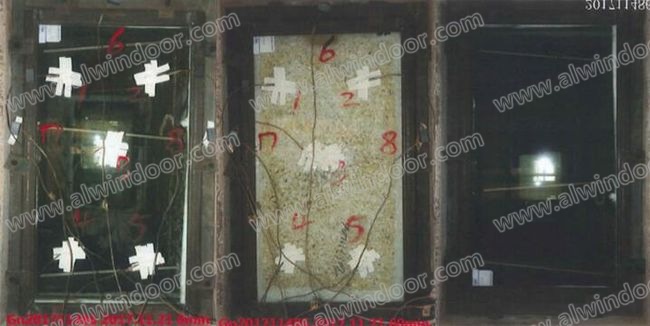 采用干法生產5mm鋼化玻璃+1mm防火膠+3mm浮法玻璃+9A+5mm鋼化玻璃組成的鋁合金耐火窗經國家建筑工程質量監督檢驗中心根據GB/T12513-2006檢驗,由的耐火完整性:≥61min。