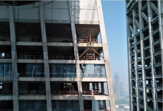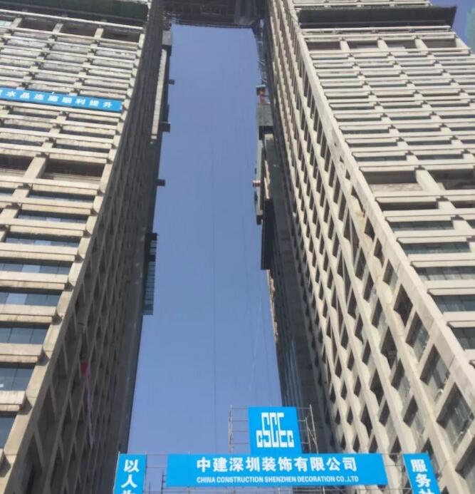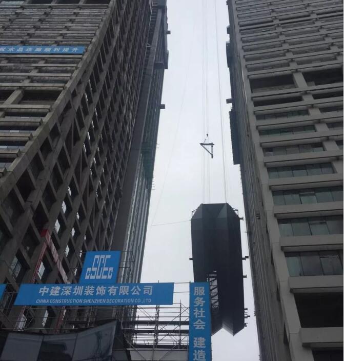 重慶來福士水晶連廊底部鋁板距地面標高達到200m ,且連廊塔樓之間間距達到50m。幕墻單元屬于超大超寬超重完整單元體,完全超越常規(guī)幕墻單元,開啟幕墻液壓同步提升先河。