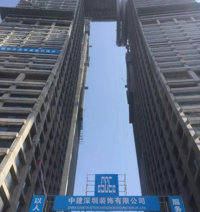 作為凱德集團在全球的第八座來福士,也是體量最大、建筑難度最高的一座。中建深圳裝飾有限公司施工的空中連廊外幕墻項目,底部有相互獨立的四棟塔樓支撐,同時是彎弧波紋形狀,整個連廊就是一座在超高空“躺倒”的超高層項目。幕墻顧問(詞條“幕墻顧問”由行業(yè)大百科提供)為艾勒泰建筑工程咨詢(上海)有限公司。