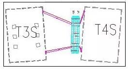 經(jīng)過碰撞檢查依然存在無法移動吊點,不滿足在L4層布置的設(shè)備,只能根據(jù)實際模擬調(diào)整設(shè)備安裝在鋼結(jié)構(gòu)L1到L3層,為防止T2和T3S之間有室內(nèi)游泳池漏水,提升設(shè)備吊孔無法在泳池底布置吊孔,只能通過架設(shè)鋼梁或者懸挑鋼梁進行吊點支撐。