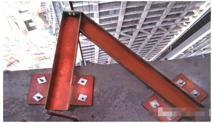 垂直提升需要兩天,夜間停留必須與結(jié)構(gòu)可靠連接,確保夜間纜風保障。雙掛鉤纜風可以滿足一個掛鉤與豎向纜風索道連接,另一個掛鉤與結(jié)構(gòu)拉結(jié)形成纜風雙保險。