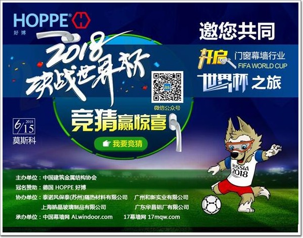 激情“世界杯”充斥著我們2018的這個夏天,除了大聲吶喊、暢快喝酒、揮灑熱情之外,我們更是需要記錄下這一個個難忘的、精彩的,動情的、澎湃的瞬間。為豐富門窗幕墻行業人士的看球文化,由中國幕墻網 ALwindoor.com 發起,上海皓晶玻璃制品有限公司支持協助的“2018世界杯”競猜贏禮盒活動,將在世界杯期間同期舉辦。期待能夠為喜愛足球的行業精英們,奉上一份意外的驚喜!