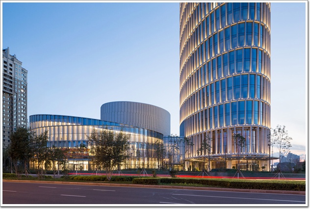 項(xiàng)目幕墻工程由北京和平鋁業(yè)三河和平鋁材廠有限公司承接,建筑外皮設(shè)計(jì)旨在營(yíng)造多層次的材料變化,照明系統(tǒng)讓建筑展現(xiàn)富有層次和深度,也彰顯了建筑材料的多樣化。大廈外立面主要采用單元體幕墻,包括單元玻璃幕墻、單元石材幕墻、屋頂單元百葉幕墻、屋面金屬百葉、夾膠玻璃雨篷、框架式玻璃幕墻等,幕墻總面積為18000平米。