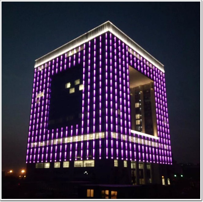面,在建筑立面上,讓燈光以面的形式出現,用面的方式去營造商業氣氛,用面去區分建筑的功能區域,將整個面立體化。