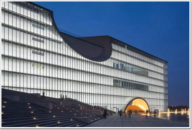 建筑的內心是抽象的又是意象的,很難用某種比較直接的方式來表達。景觀照明設計就是要抓住這一點,利用“弦外之音”的手段外化建筑的內在抽象的情感。燈具作為立面組成的一部分,與幕墻系統結合設計,既解決了建筑外立面的夜間景觀照明,又不影響白天建筑物的藝術效果。