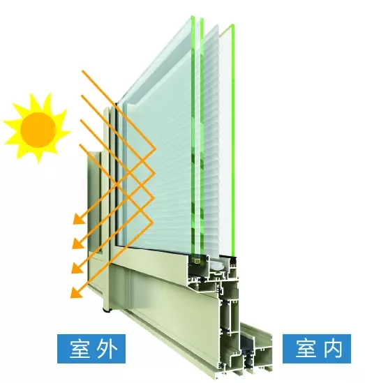 內藏百葉可按需要上下調節,炎炎夏日,有效控制室外陽光的射入,從而降低通過陽光進入室內的熱量。